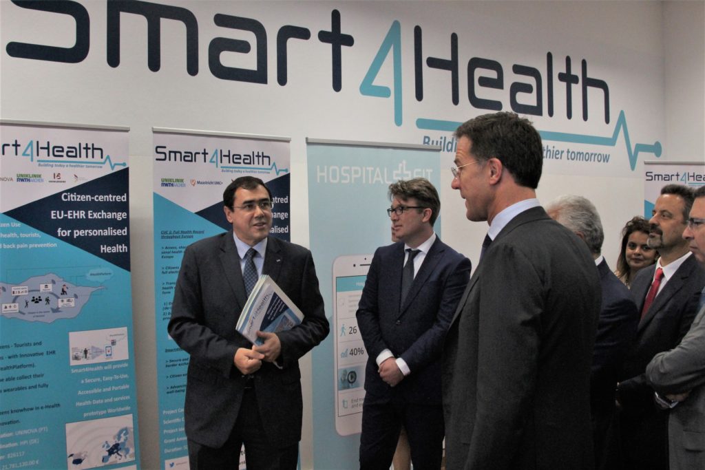 On the 3rd of April 2019 the Prime Minister of The Netherlands (Mark Rutte) and the Prime Minister of Portugal (António Costa) visited the UNINOVA’s Hub for Digital Health and Social Inclusion with Smart4Health in the main topic of the agenda. It was a great honour to have Smart4Health project acknowledged by the two Prime Ministers for this visit, recognized as a reference project for research and innovation in Europe.